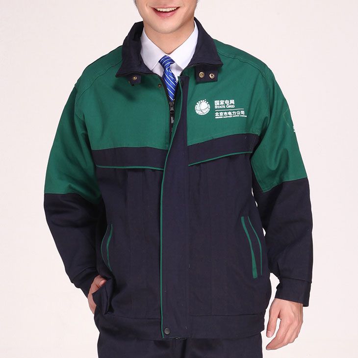 2)此款工裝是 電網(wǎng)專用工作服,右臂、胸口帶電網(wǎng)統(tǒng)一刺繡標(biāo)志,左臂、胸口袋都可插筆,顏色清爽,線條簡(jiǎn)潔,電力工程隊(duì)首選。